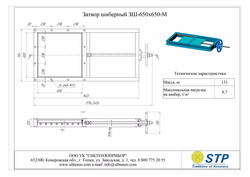 Купить затвор шиберный 3Ш-650х650-М из высокоуглеродистой стали вы можете в нашей компании «Сибтензоприбор»‎.